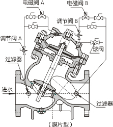 在主閥不變的情況下,通過針形閥、先導閥及相應(yīng) 控制系統(tǒng),根據(jù)管網(wǎng)中不同的要求,可演變出幾十種功能的閥門,除上述5種給水系統(tǒng)常用的以外尚有電動浮球閥、水力電動控制閥、電磁控制閥、流量控制閥、緊急關(guān)閉閥等。均有不同的設(shè)計選用要求和安裝要求。